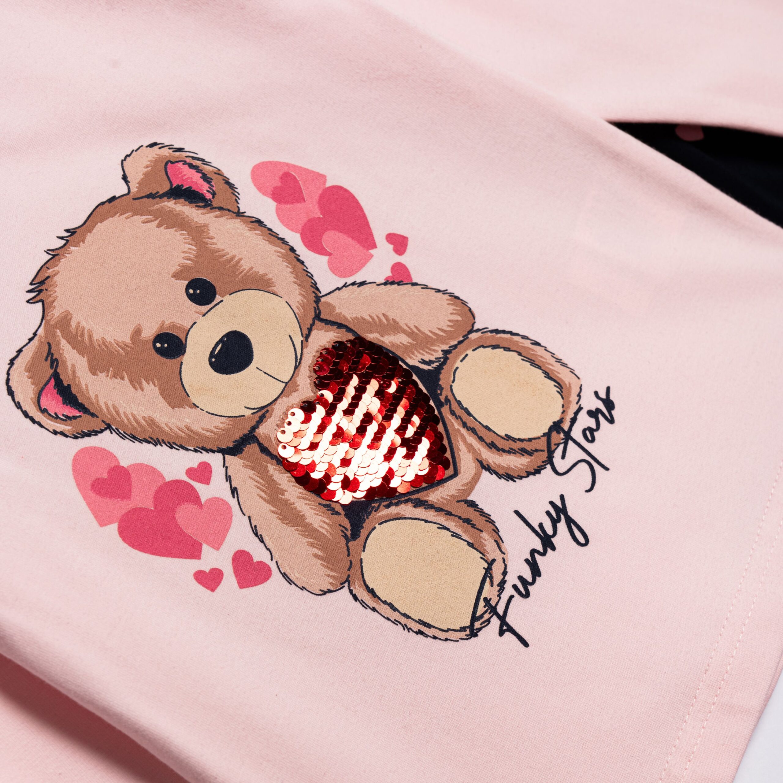 Σετ 2τεμαχίων μπλουζοφόρεμα κάλτσα λύκρα με τύπωμα (αρκουδάκι)και κολάν φούτερ λύκρα με τύπωμα allover για κορίτσι 6-24 μηνών σε χρώμα ροζ πούδρας/μπλε allover
