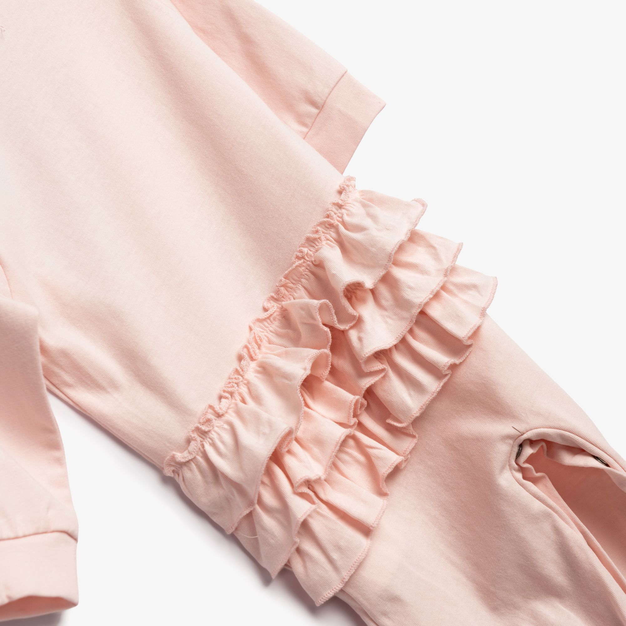 Φορμάκι μακρυμάνικο με τύπωμα (κουνελάκι) σε χρώμα ροζ-λευκό allover για κορίτσι βρεφανάπτυξη