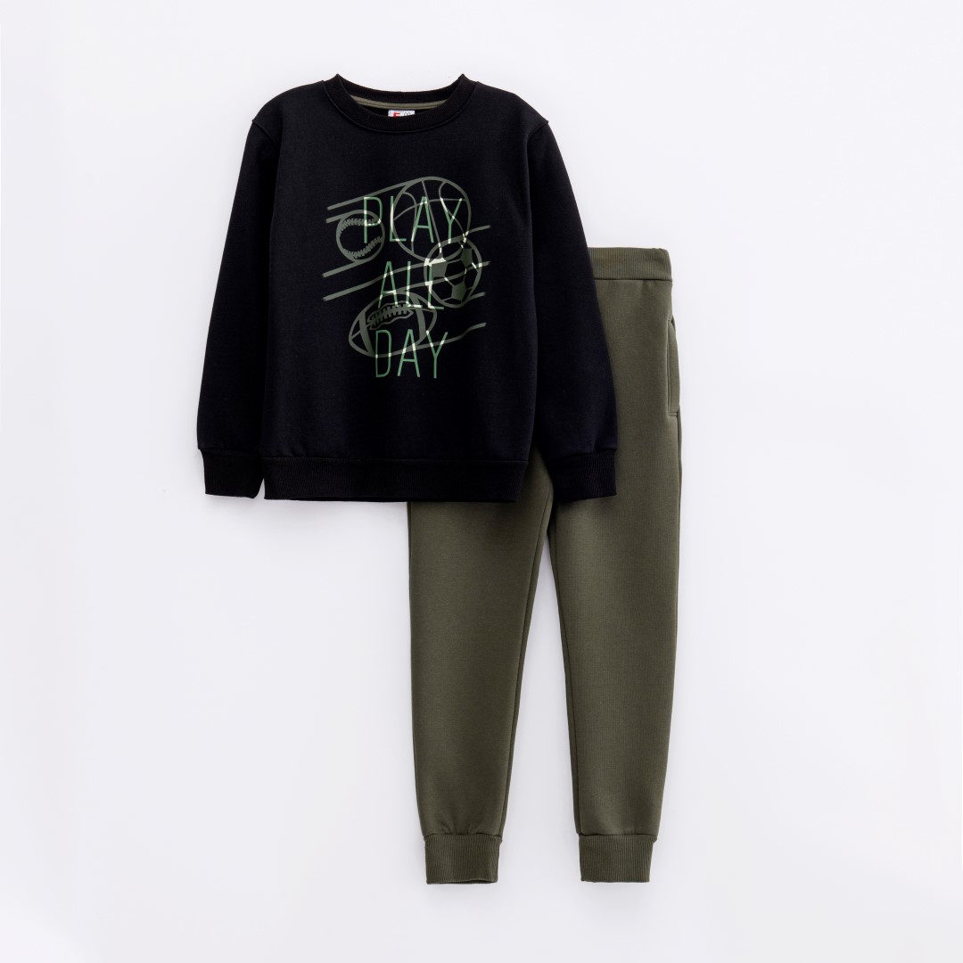 Σετ φόρμα φούτερ αγόρι.Μαύρο/λαδί