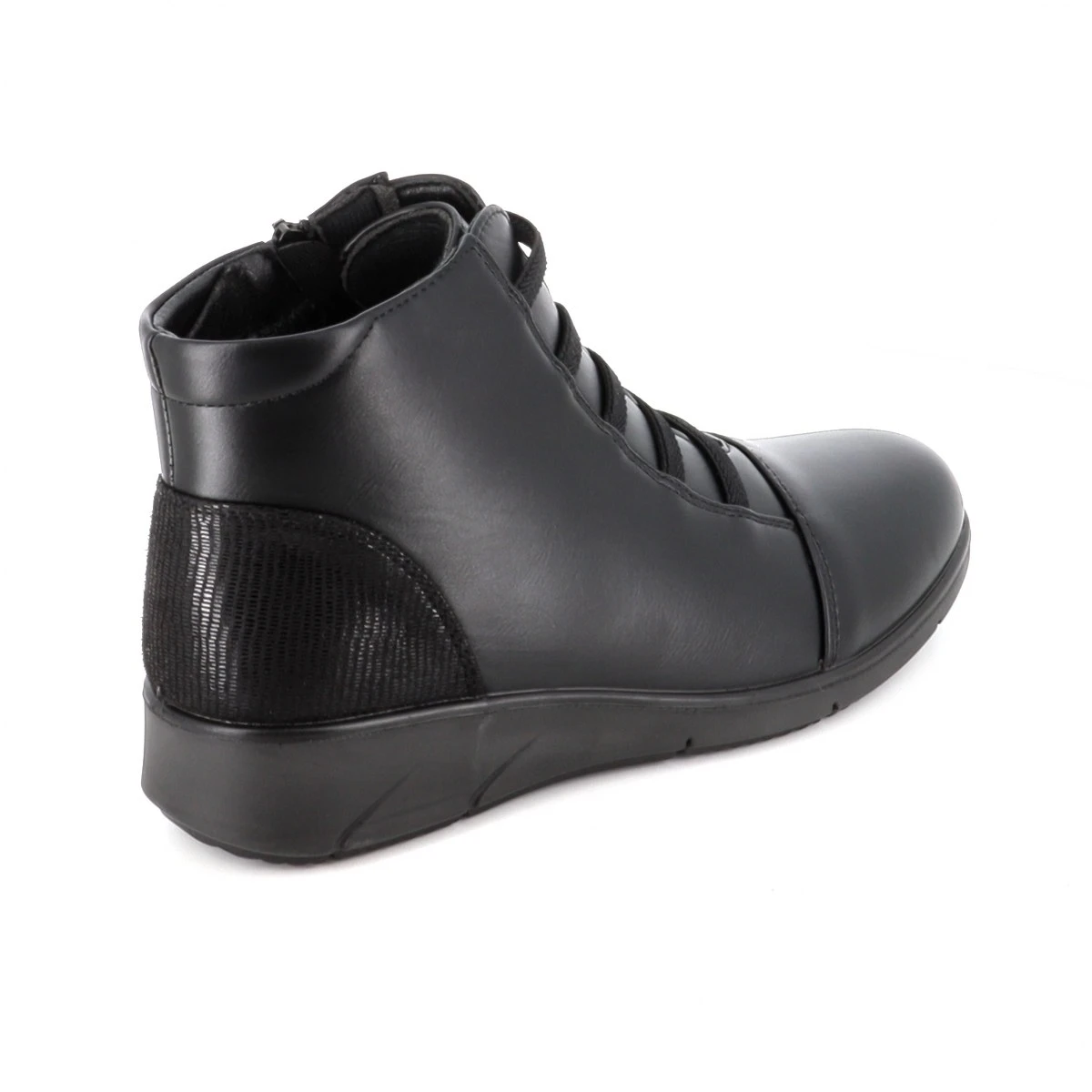 Γυναικεία μποτάκια για άνετο περπάτημα όλη την ημέρα. Σταθερή σόλα και δερμάτινος αναπαυτικός πάτος. Με χαμηλό τακούνι και φερμουάρ στο πλάι.