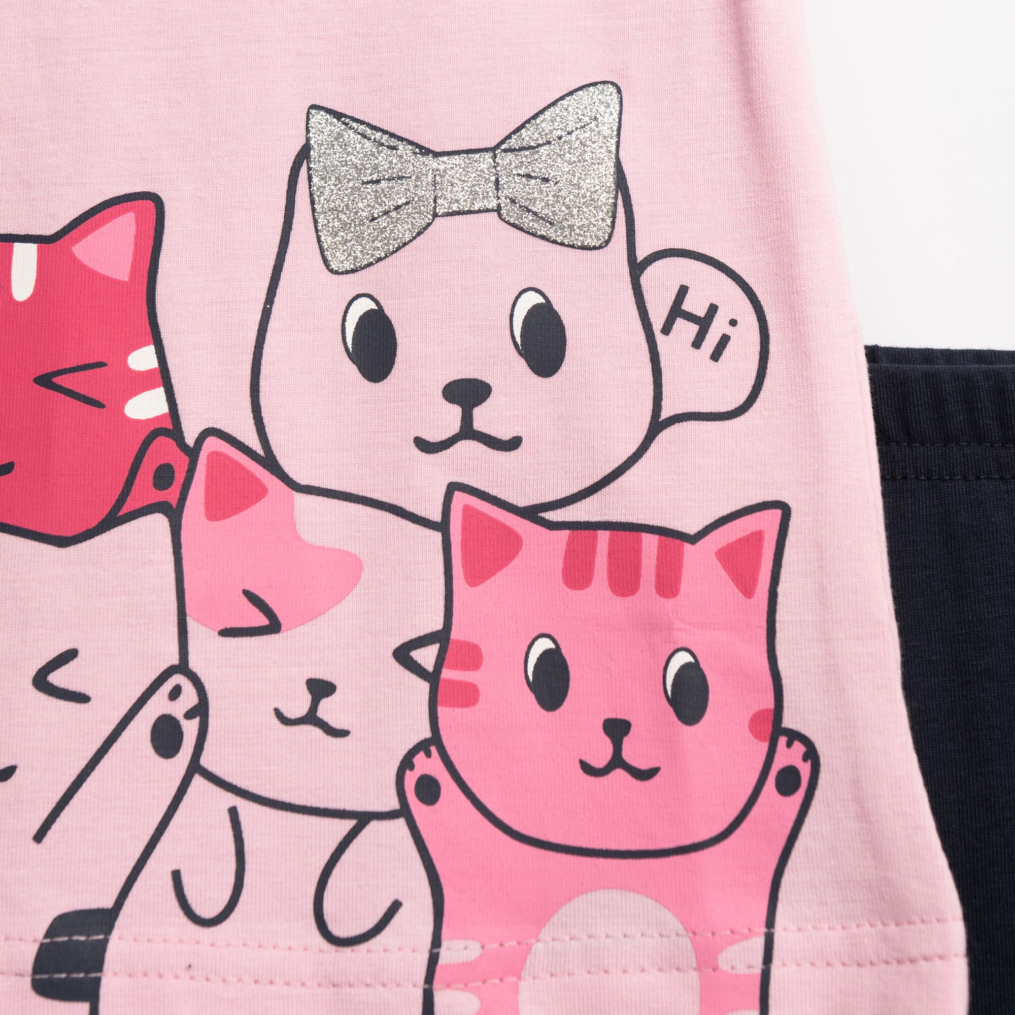 Μπλουζοφόρεμα κάλτσα λύκρα με τύπωμα (γάτες) και κολάν κάπρι σε χρώμα ρόζ λεβάντα/μπλέ για κορίτσι μηνών