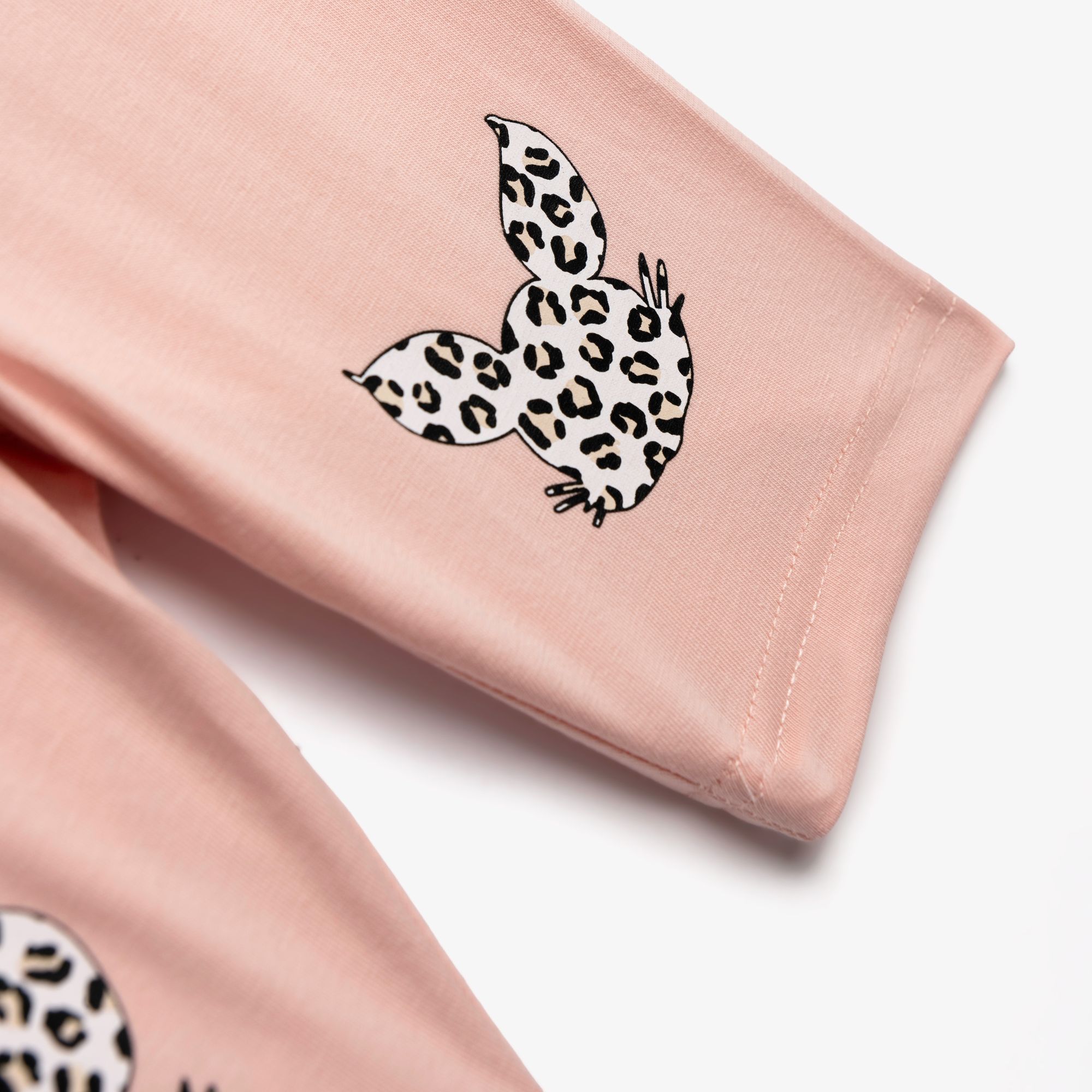 Μπλούζα κάλτσα με τύπωμα (ποντικάκι) allover και κολάν κάπρι με τύπωμα σε χρώμα λευκό-ροζ πούδρας/ροζ πούδρας για κορίτσι μηνών