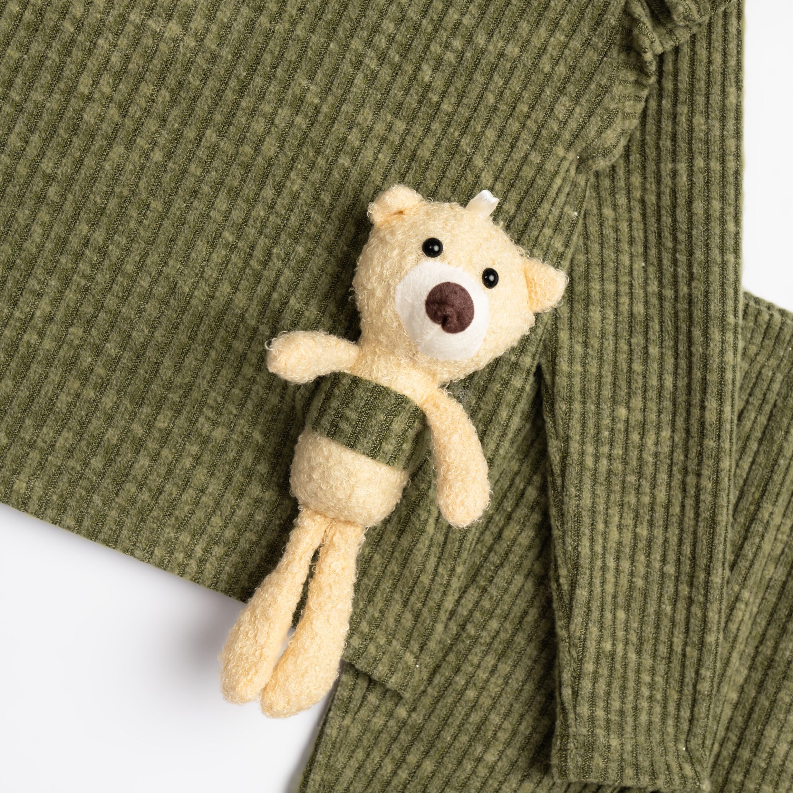 Σετ μπλούζα με παντελόνι ριπ για κορίτσι σε χρώμα ανοιχτό λαδί/ ανοιχτό λαδί με μικρό τύπωμα (αρκουδάκι)
