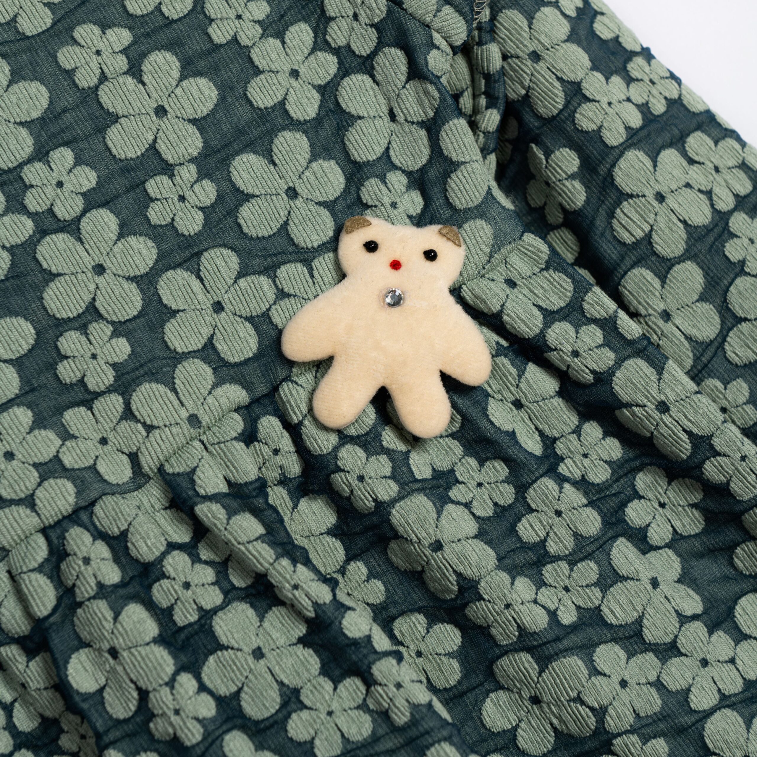 Σετ 2τεμαχίων μπλουζοφόρεμα με τύπωμα(λουλούδια) allover και αρκουδάκι , κολάν ελαστικό με τύπωμα(λουλούδια) allover και κορδέλα για κορίτσι.