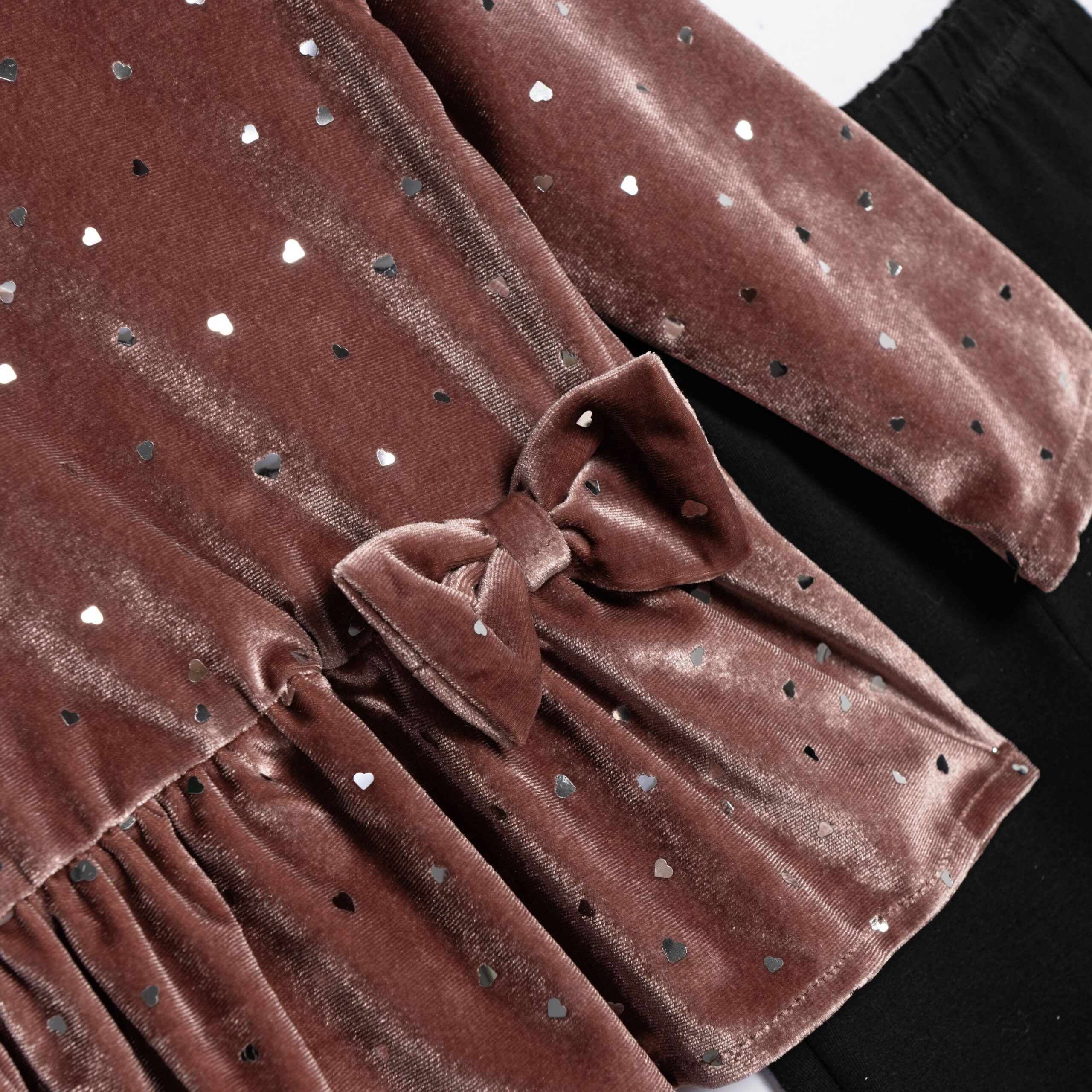 Σετ 2τεμαχίων μπλουζοφόρεμα με φιόγκο και κολάν κάλτσα λύκρα για κορίτσι 6-24 μηνών σε χρώμα σκούρο ροζ/μαύρο
