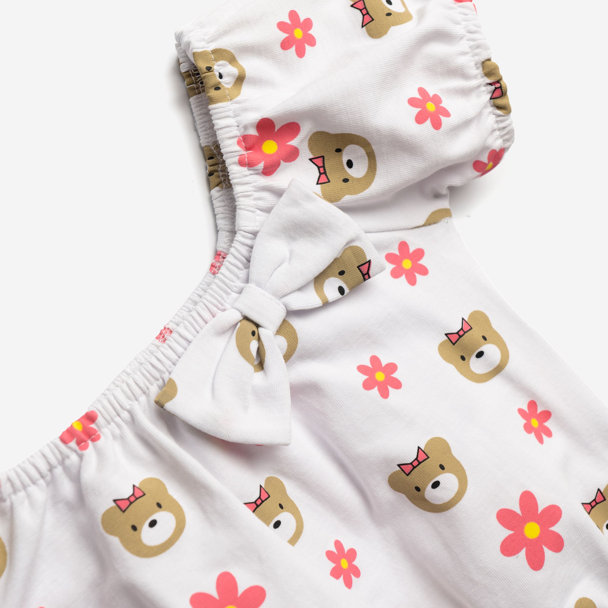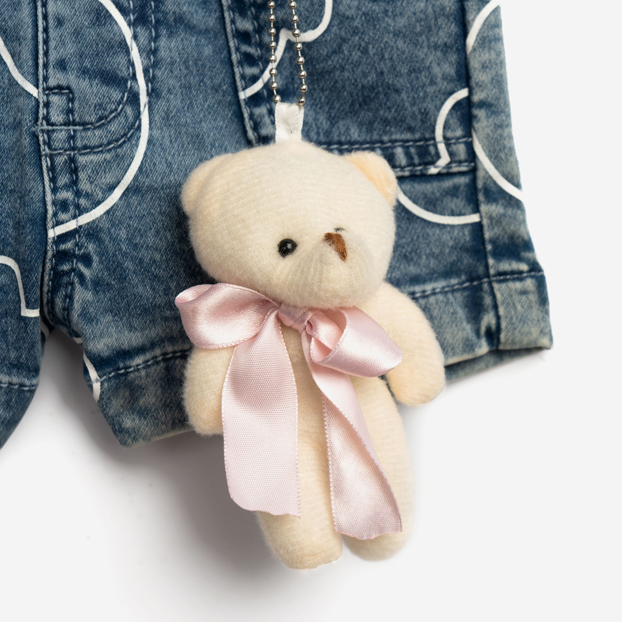 Σετ μπλούζα κάλτσα λύκρα με τύπωμα (αρκουδάκια) allover και σόρτς τζίν λύκρα με τύπωμα allover σε χρώμα λευκό/μπλέ τζίν για κορίτσι μηνών