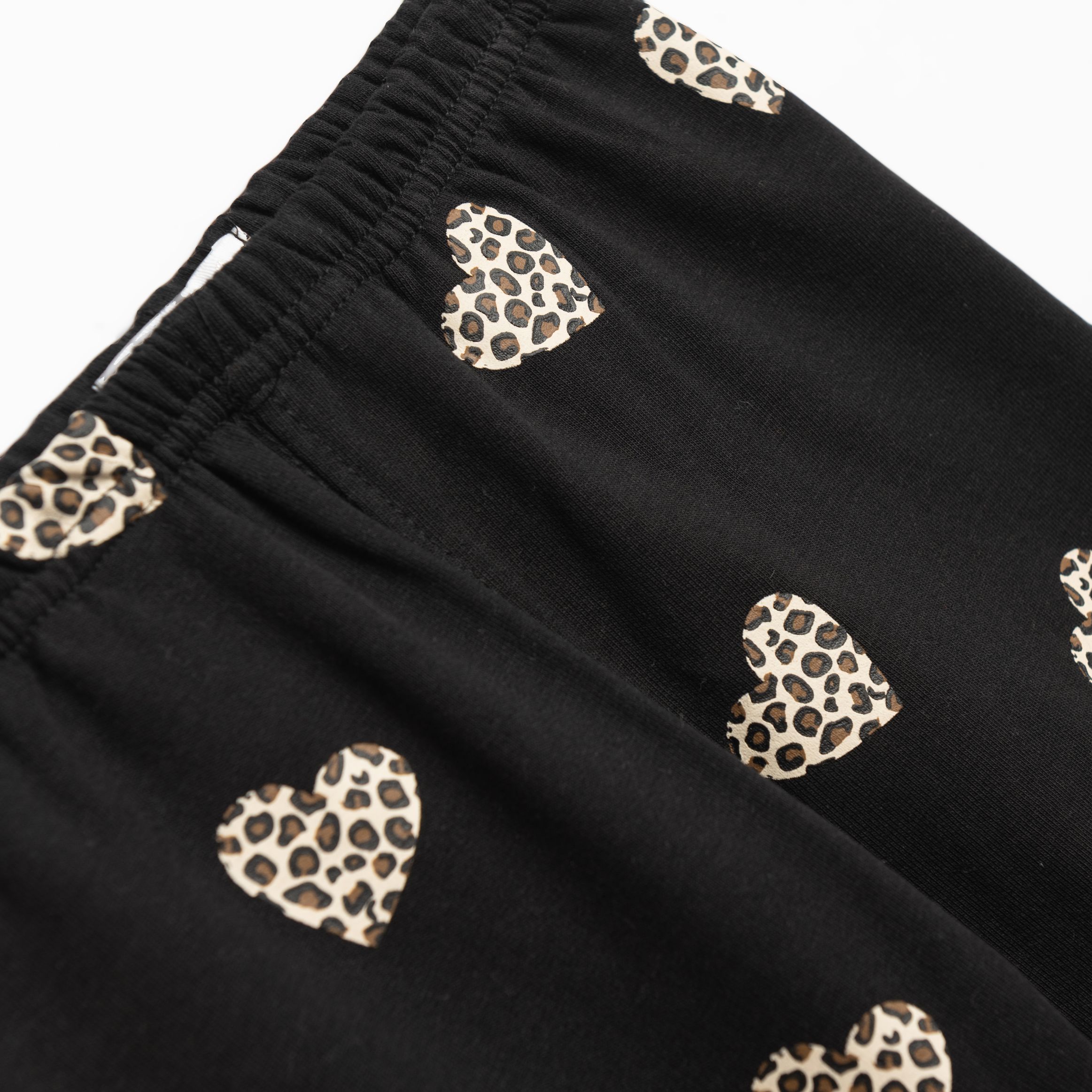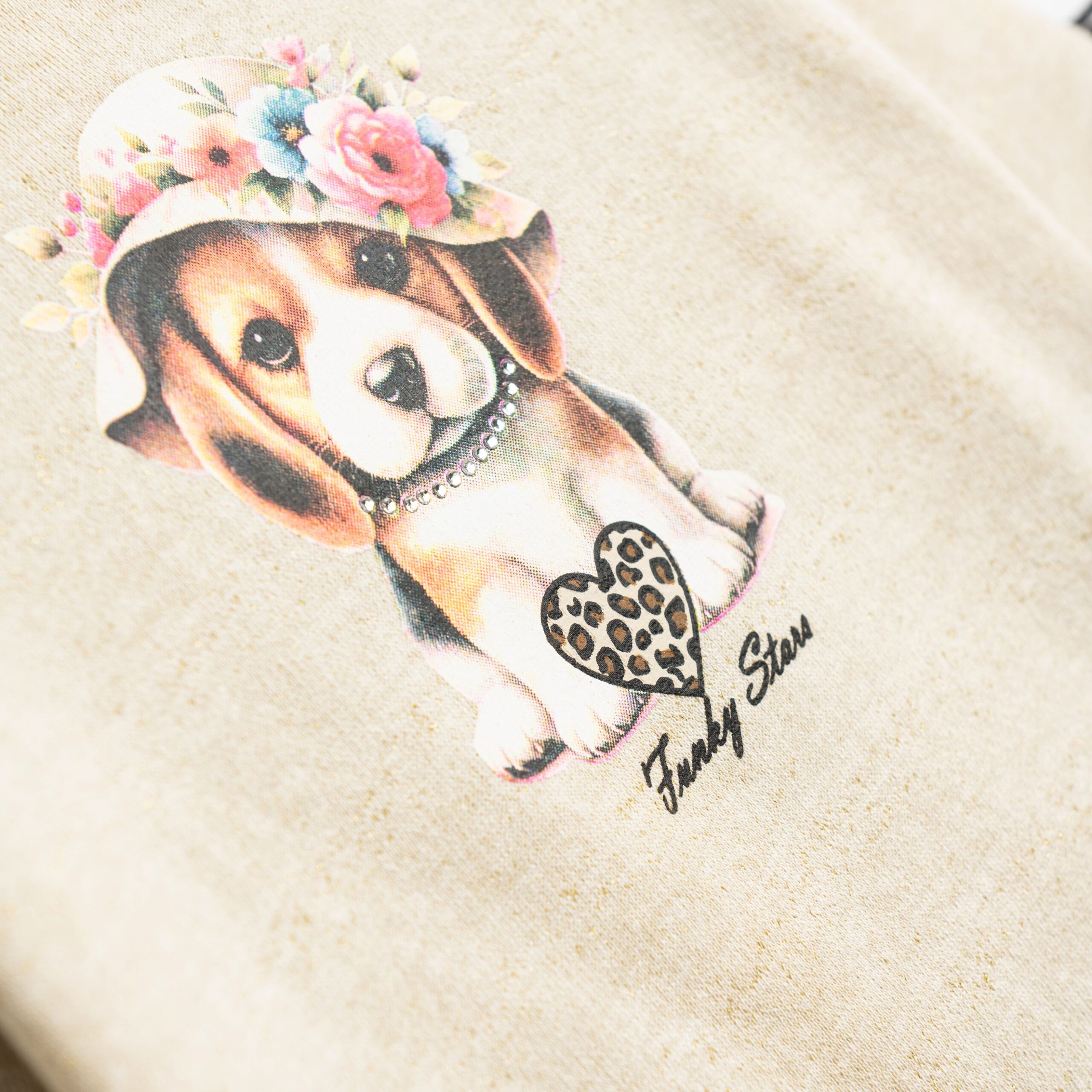Σετ μπλούζα με κολάν φούτερ για κορίτσι 2-5 ετών σε χρώμα χρυσό λούρεξ/ μαύρο allover με τύπωμα στην μπλούζα (σκυλάκι) και καρδιές στο κάτω μέρος