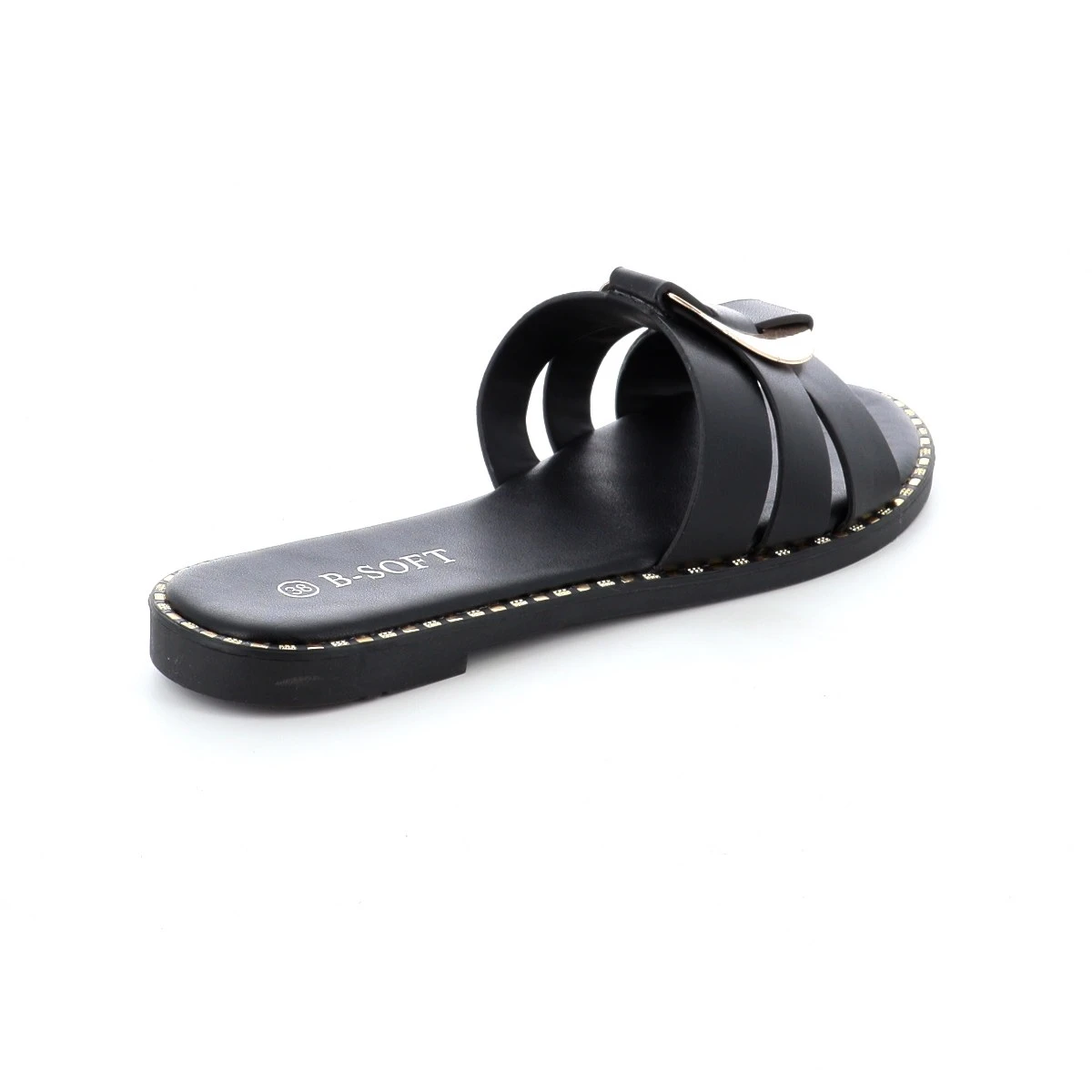 Flat σανδάλια με φαρδιά φάσα και μεταλλική λεπτομέρεια στο πάνω μέρος. Chic σχέδιο που μπορεί να φορεθεί στο γραφείο αλλά και στις καλοκαιινές σου βόλτες