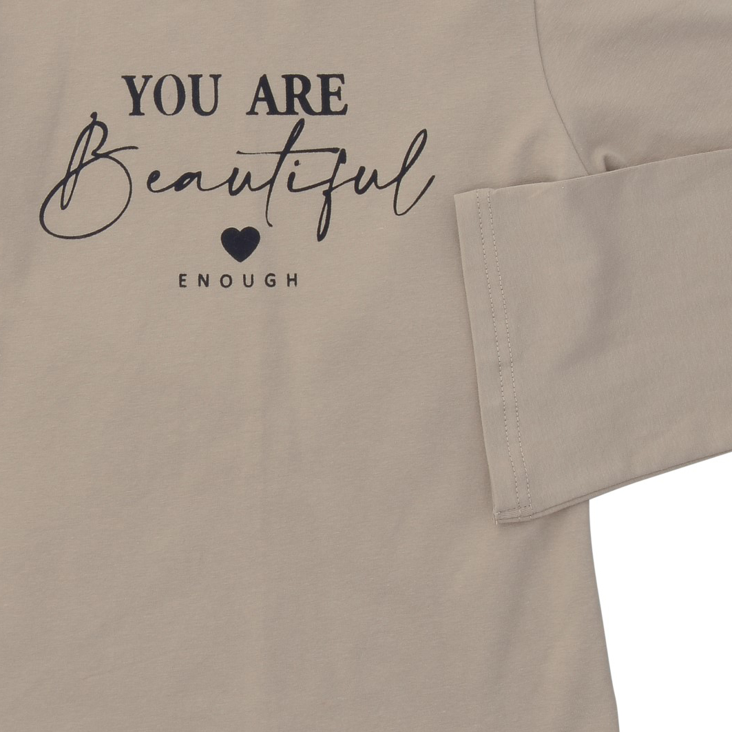 Μπλούζα μακρυμάνικη για κορίτσι από 6 ως 16 ετών, σε χρώμα -nougat με τύπωμα (you are beautiful enough)