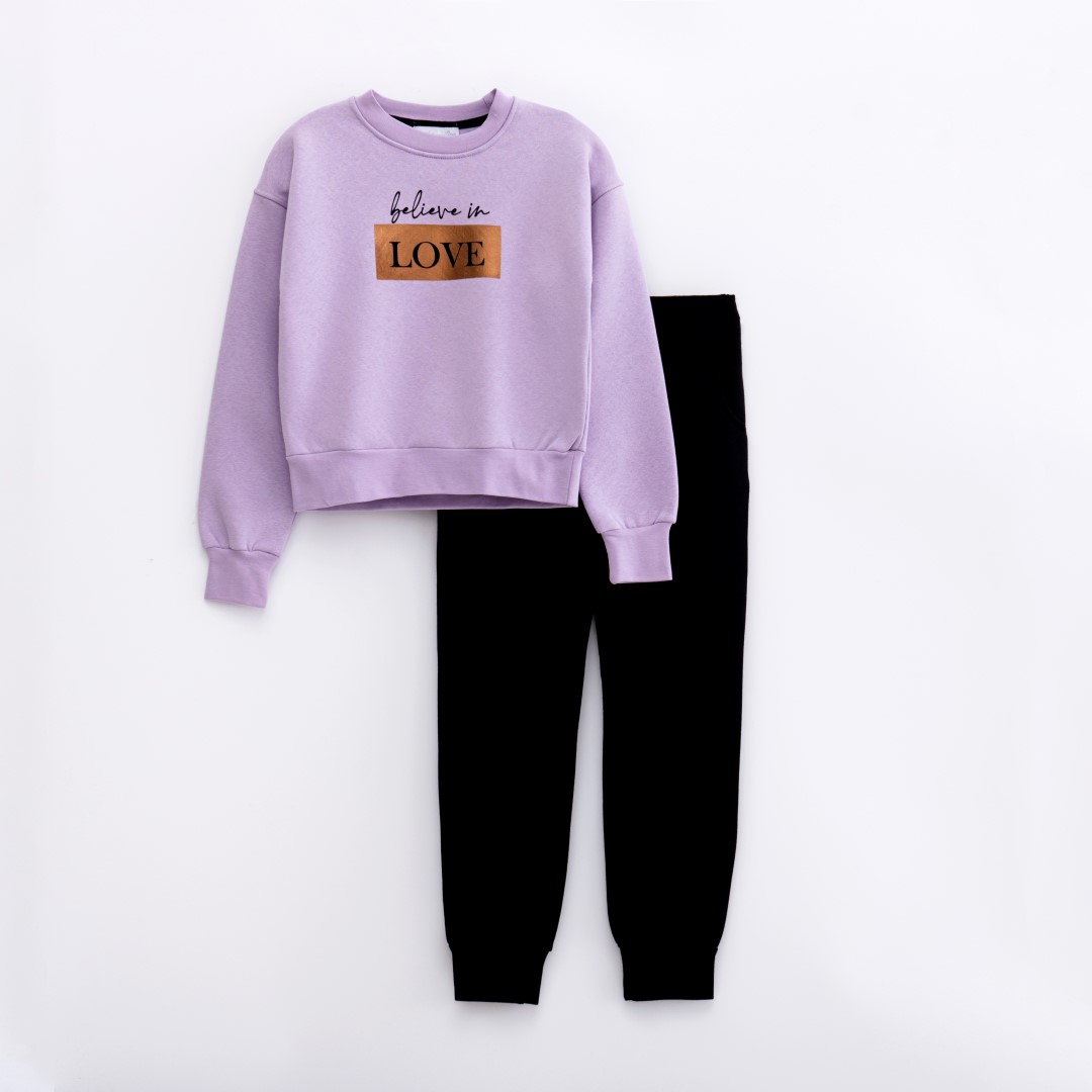 Σετ φόρμα φούτερ για κορίτσι σε χρώμα σκούρο λιλά -μαύρο