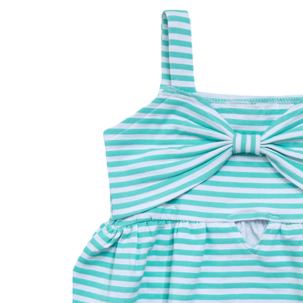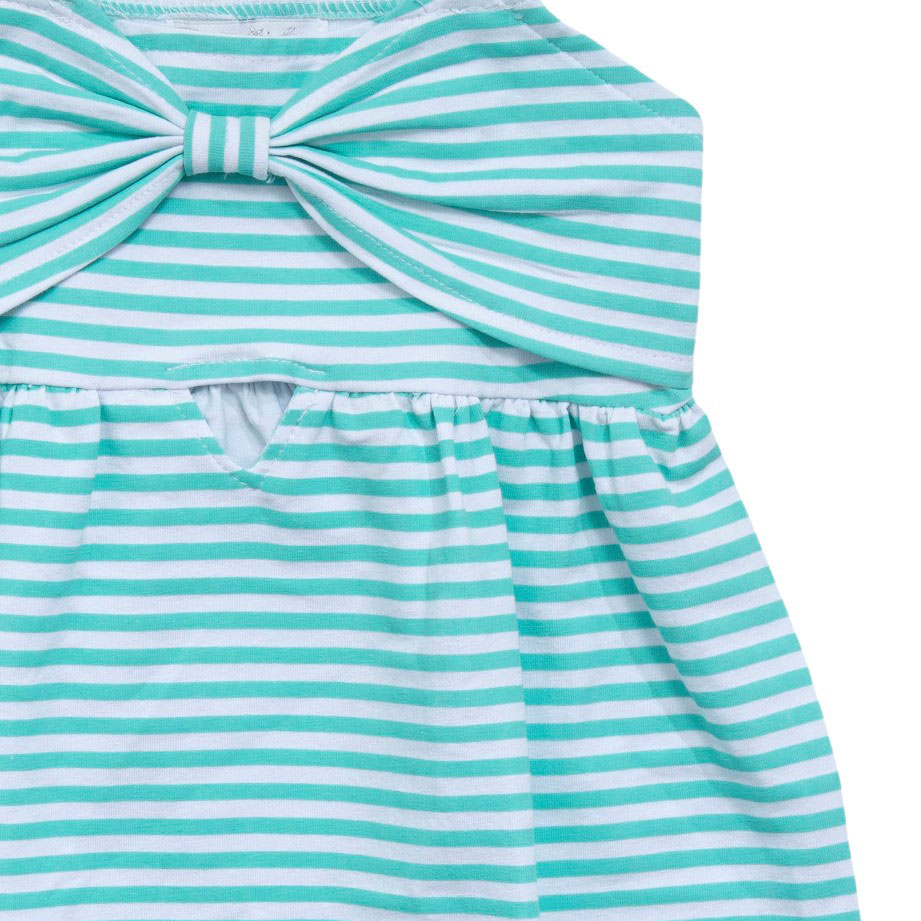 Φόρεμα λύκρα για bebe κορίτσι από 1 έως 6 έτων, σε λευκό-άκουα ριγέ χρώμα με φιόγκο.