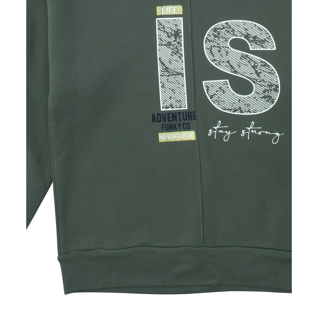 Μπλούζα φούτερ μακρυμάνικη για αγόρι σε χρώμα χακί με τύπωμα(life is adventure), ποιότητα 70%cotton-30%polyester