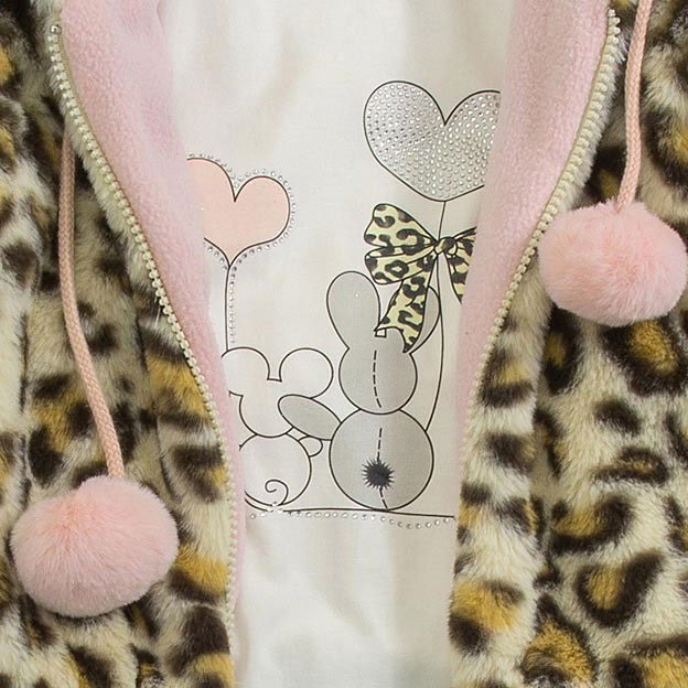 Κορίτσι bebe 1-6 χρονών σετ γουνάκιι-μπλούζα-παντελόνι μακρυμάνικο 100% πολυέστερ – 95%βαμβάκι 5% ελαστάν σε χρώμα τύπος με τύπωμα(στη μπλούζα).