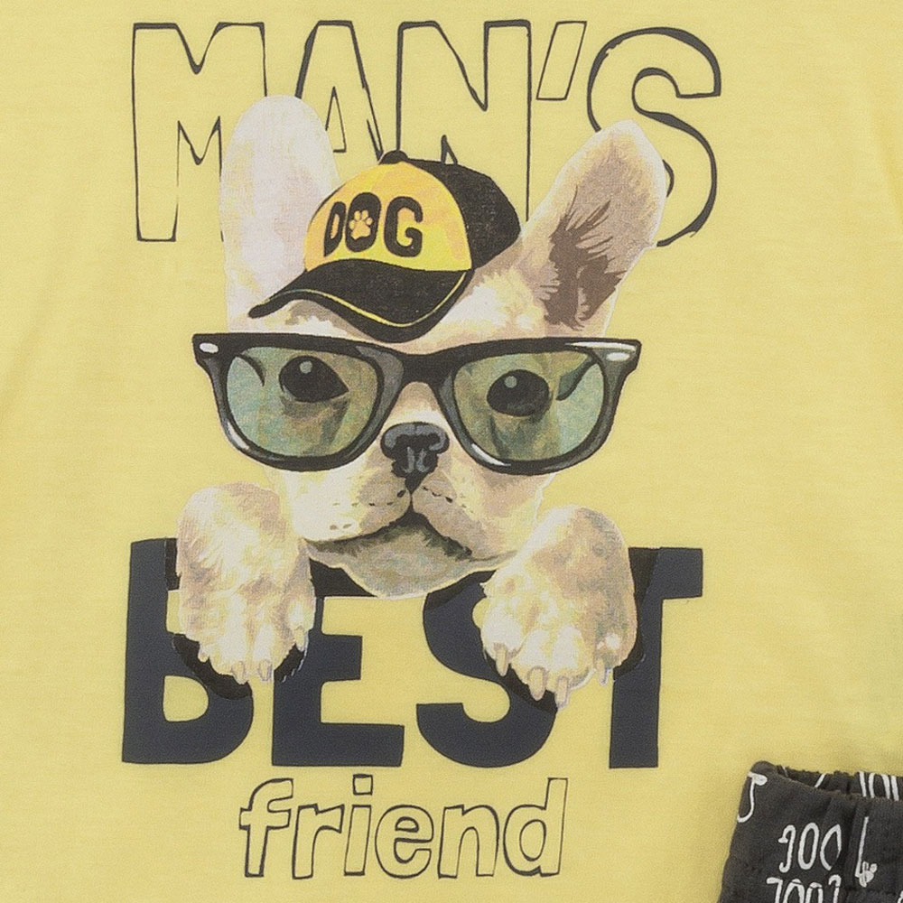 Σετ μπλούζα & βερμούδα για αγόρι μηνών σε χρώμα -ηλιόσπορος με τύπωμα(man’s best friend)